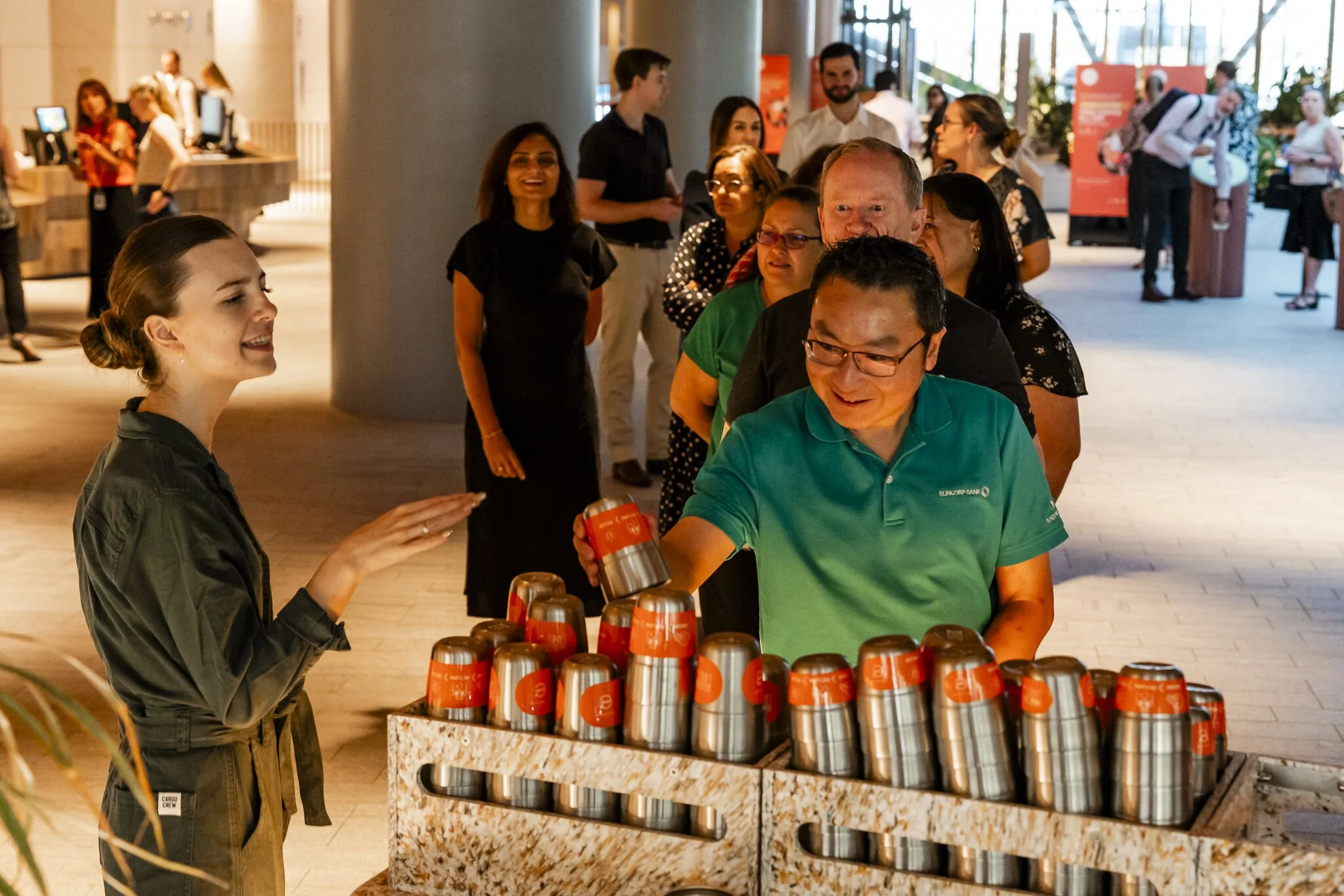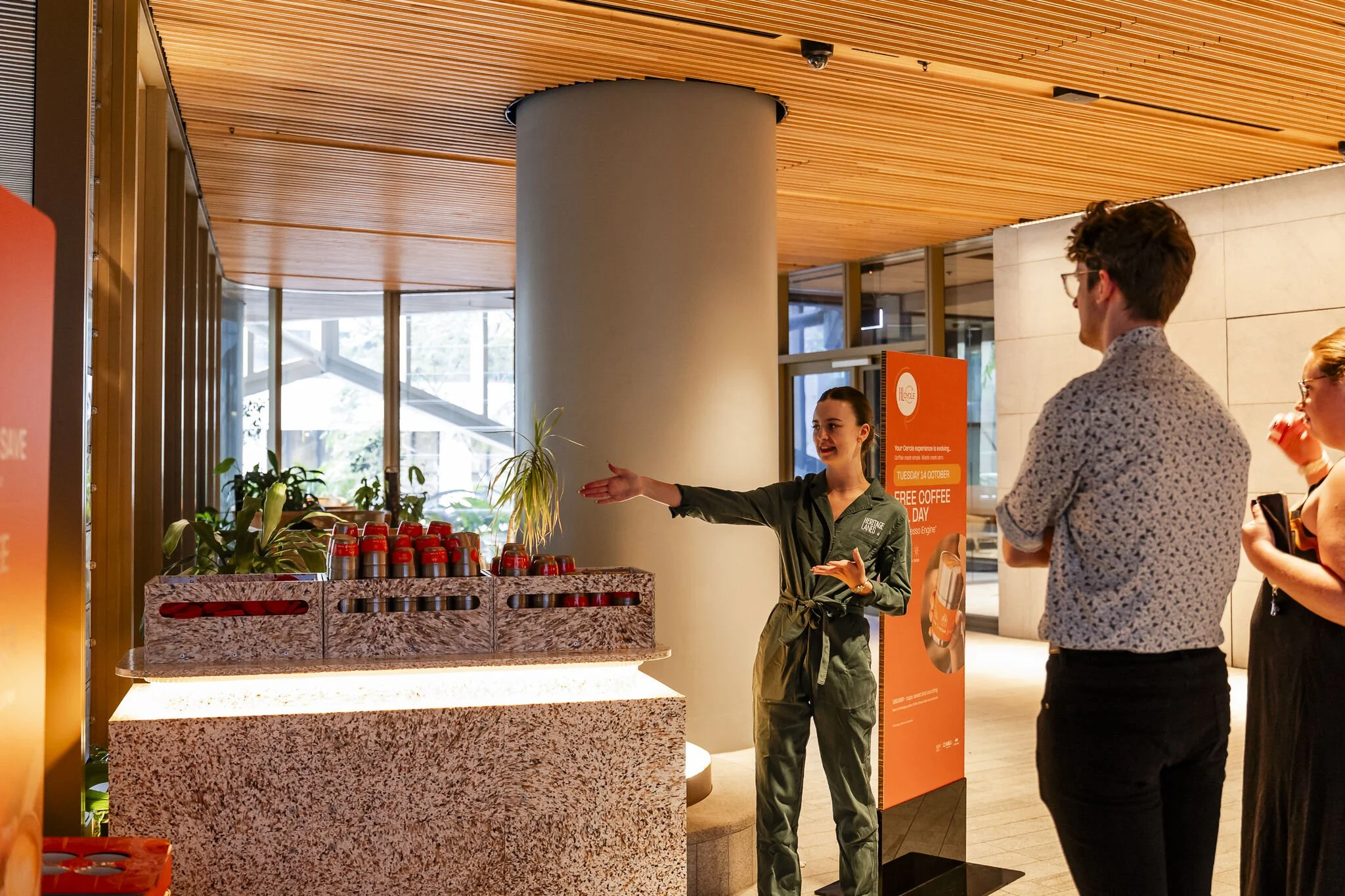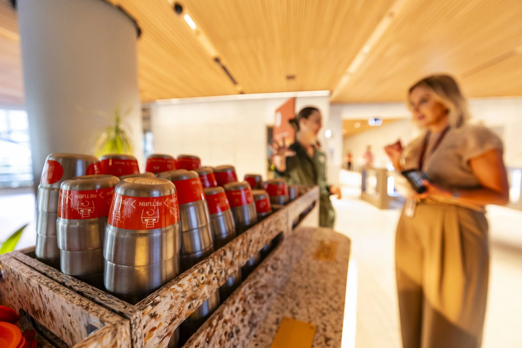 This self-service kiosk was created to improve access and adoption of reusable cups across the building’s five hospitality venues and reduce single-use coffee cup usage at the site.